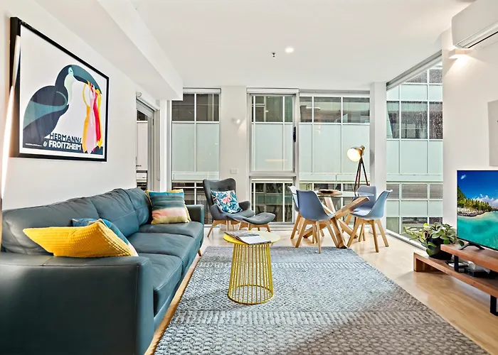 Modern Renovated Apartment In Melbourne Cbd de 64 m² est niché dans le quartier central des affaires de Melbourne, à seulement 7 minutes de marche de la Rue commerçante Degraves Street.